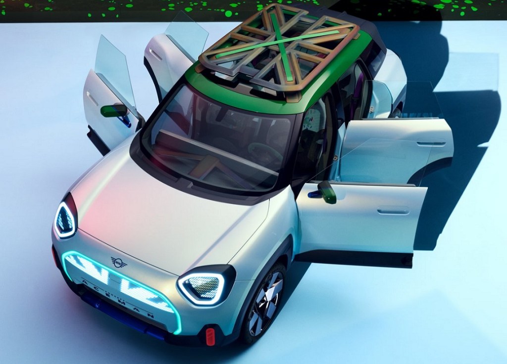 La Mini Aceman entend préfigurer l’avenir tout électrique de la marque : nouveau langage de dessin (désigné Charismatic Simplicity) demeurant toutefois directement identifiable, sensation de conduite typée gokart électrique, expérience numérique immersive et attention particulière portée à un environnement minimal.